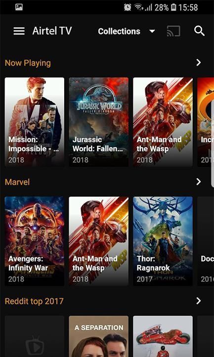Video Content : Airtel screen is a sea of video contents due to having a vast amount of contents.