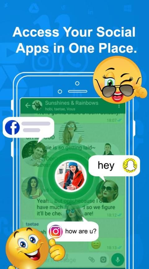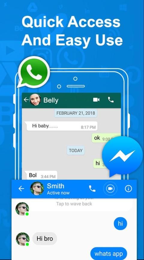 अपने सभी दोस्तों और परिवारों को एक संदेशवाहक में रखें, अपने सभी सामाजिक दूत ऐप को केवल एक क्लिक से खोलें। हर बार जब आप अपने दोस्तों और परिवारों के साथ दूत चाहते हैं, तो मैसेंजर ऐप की खोज करने की आवश्यकता नहीं है।