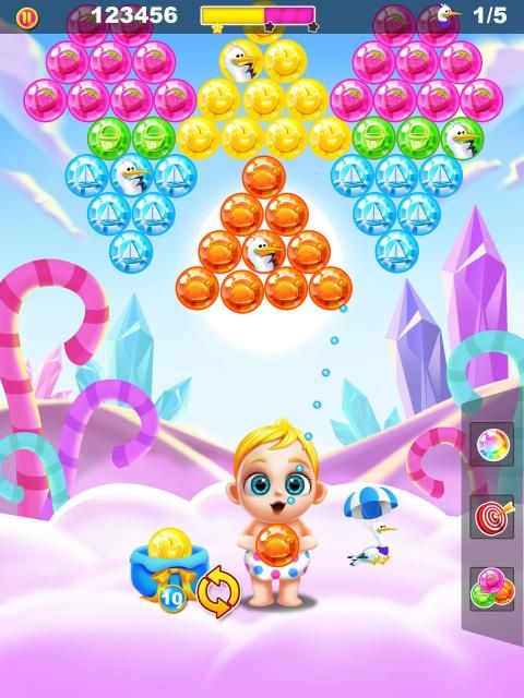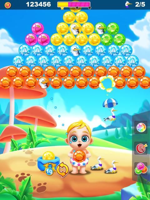 Can you save all the storks in Baby's Bubble Shooter! All levels are free and unlocked!