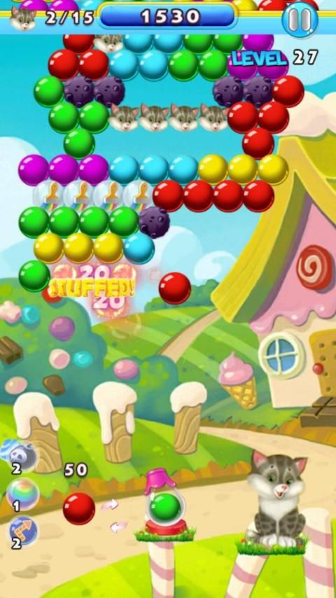 4.Pop बुलबुले कुछ के स्तर में लक्ष्य के रूप में grumpy बिल्ली पिल्ले को बचाने के लिए।