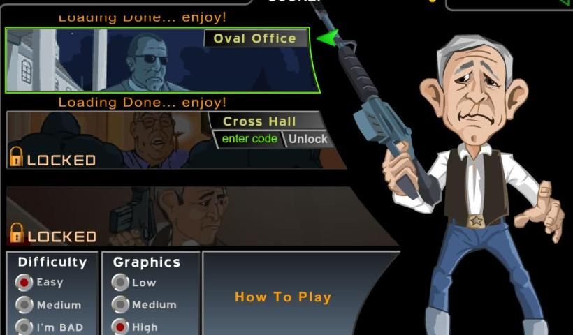 Welcome to this amazing shooting game starring president Bush and Condoleeza Rice.