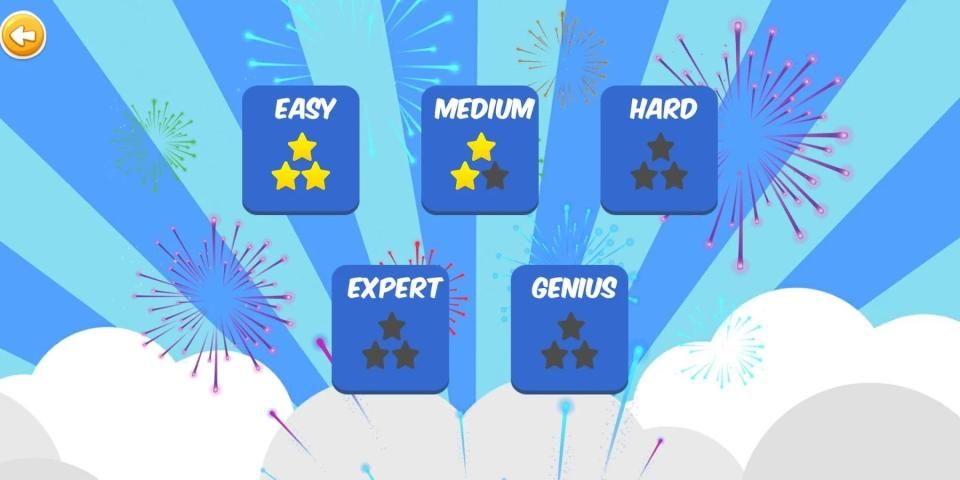 आसान 3x2, मध्यम 4x3, 6x3 हार्ड, विशेषज्ञ 6x4 और 8x4 प्रतिभा: खेल 5 स्तर होते हैं