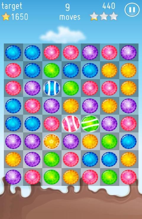 मिलान 3 या अधिक एक ही कैंडीज, अधिक से अधिक स्कोर को मिलान नहीं हुआ।