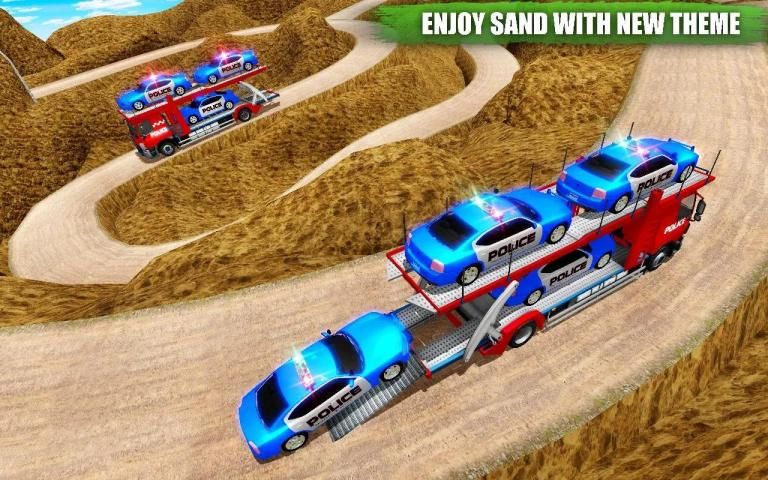 Crazy truck offroad – police transport game is an amazing driving game where you have to drive heavy-duty trucks carrying police motorbikes, police cars, police jeeps, and other cargo vehicles. Choose a truck from your collections, and transport police cars to a specified location carefully. You have to be cautious while driving in bad weather, one of your tasks will be to deal with complex road situations and through desert and forest.
