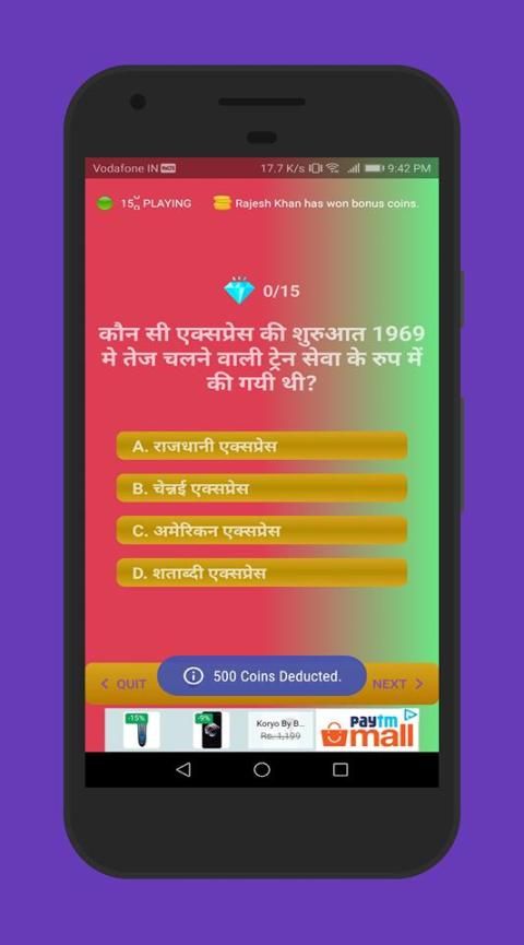 Play Crorepati Quiz Nights With Kapil in hindi questions. Crorepati Quiz Nights With Kapil will improve your knowledge and help you win real cash and game cash.