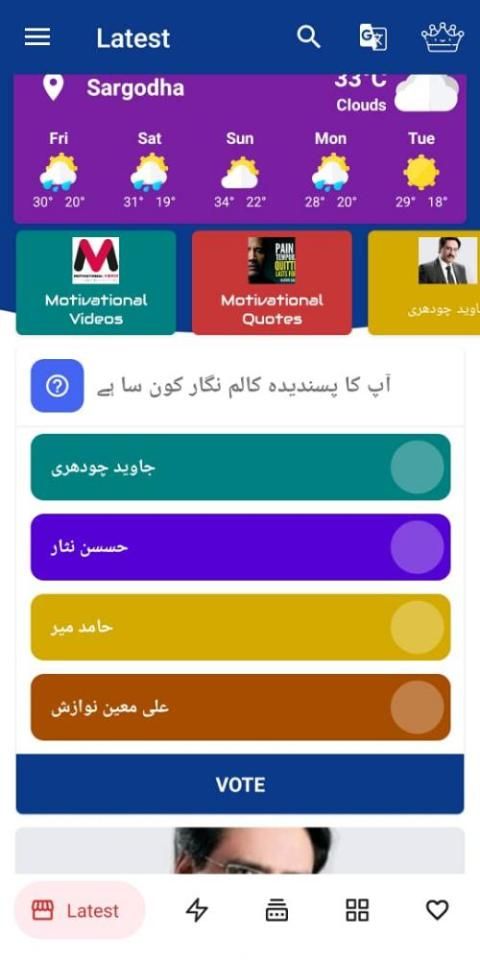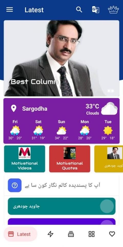 An amazing app which have all our your favourite things including Columns Movitation videos of all the famous Columnist in Pakistan in Urdu Language.