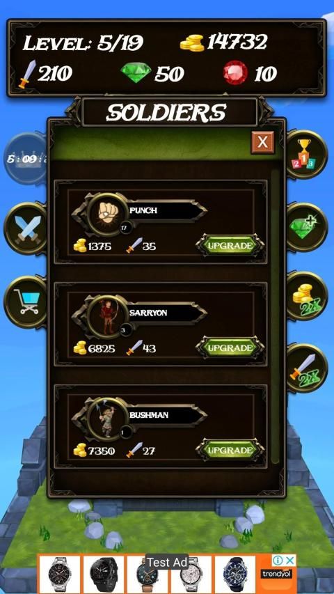 Destroy the doors and Earn Gold! You can improve your army with earned golds. Don't forget when you have ruby and crystal your army will be stranger! Attack to the Boss Door and Make High scores. when you logout game, your army will be continue destroy the doors for you!