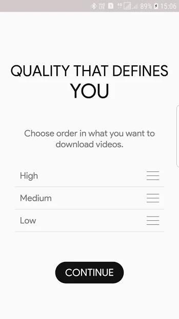 यह ऐप आपको "उच्च", "मध्यम" और "कम" से डाउनलोड गुणवत्ता का चयन करने देता है।
