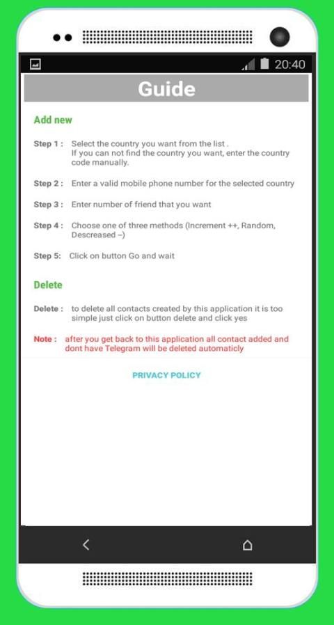 यह एप्लिकेशन यादृच्छिक संपर्क फोन उत्पन्न करने और सोशल मीडिया ऐप और अन्य चैट ऐप्स पर मित्र ढूंढने के लिए सरल अनुप्रयोग है!