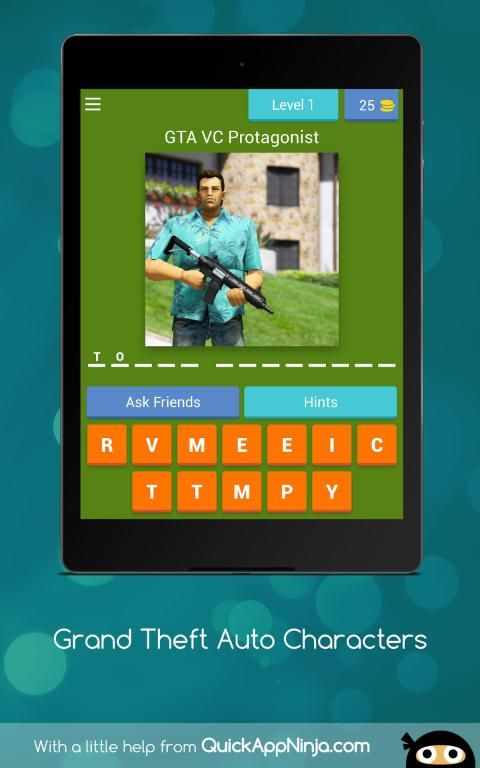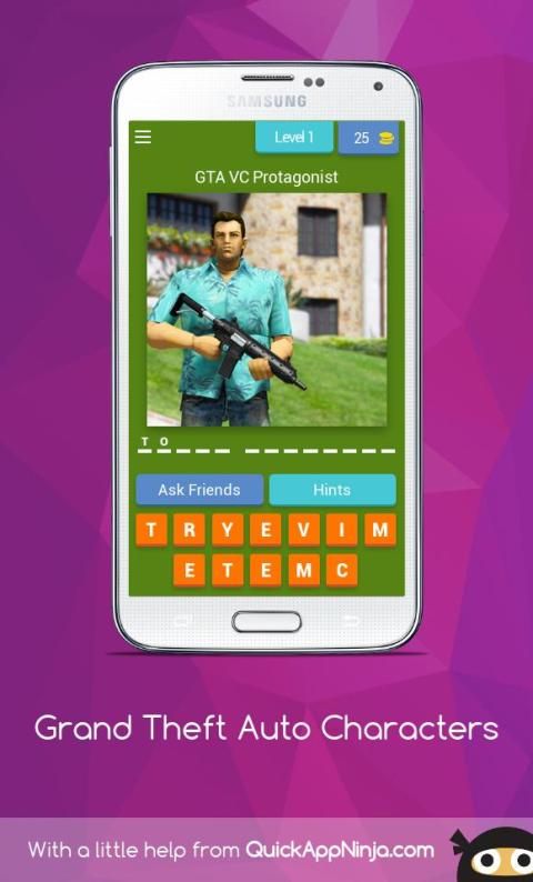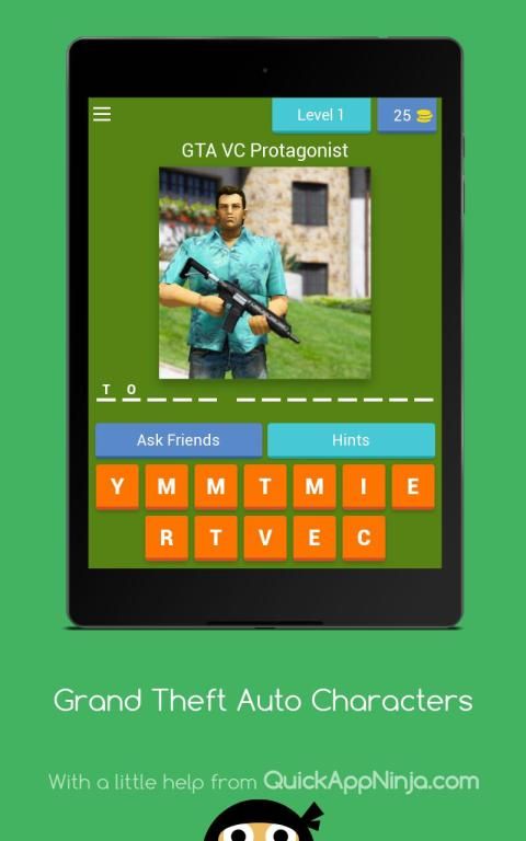 It's a word-type game where you have to guess the characters in the Grand Theft Auto series.