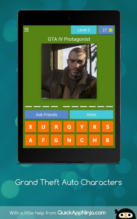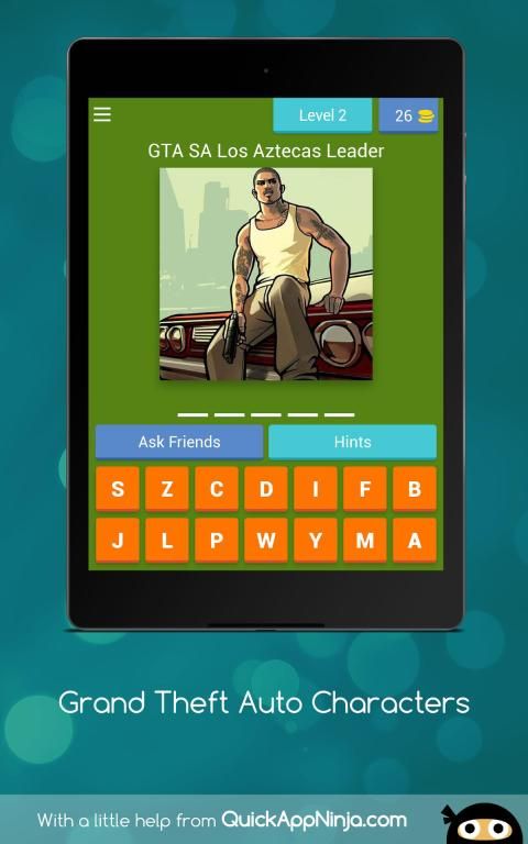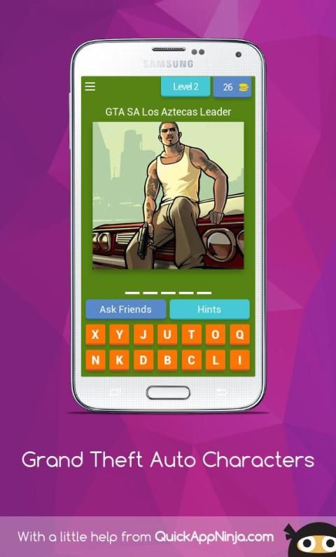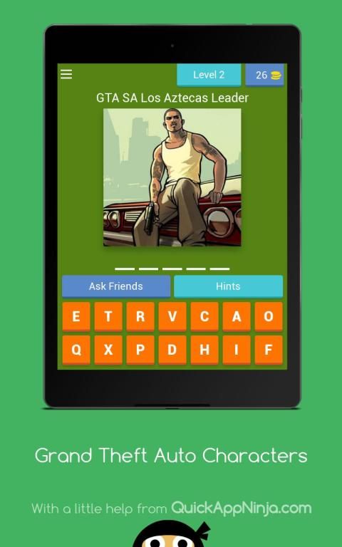 यह एक शब्द-प्रकार का खेल है जहाँ आपको ग्रैंड थेफ्ट ऑटो श्रृंखला के पात्रों का अनुमान लगाना होगा।