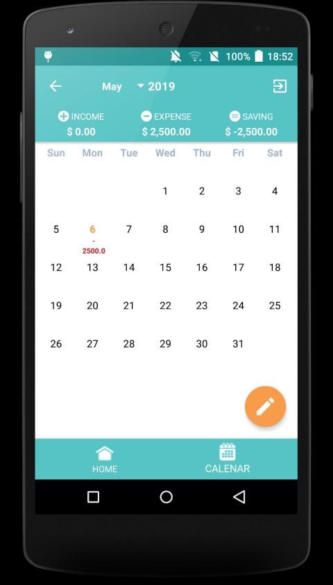 3. Calendar - Overview of all your income expense entries in calendar view.Tap over date to see all entries for selected date.