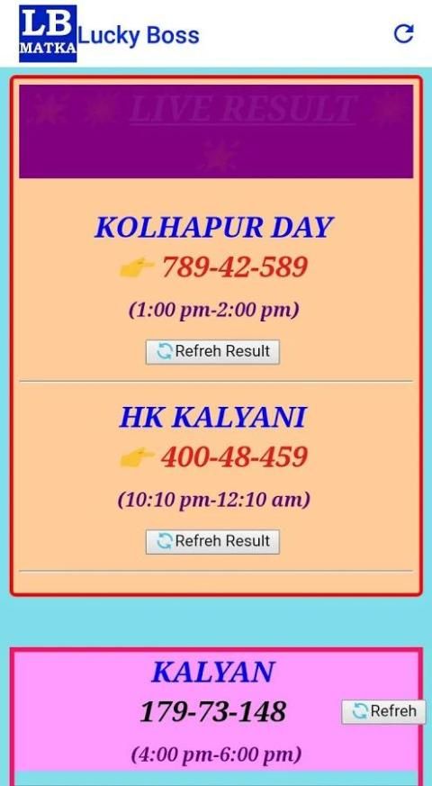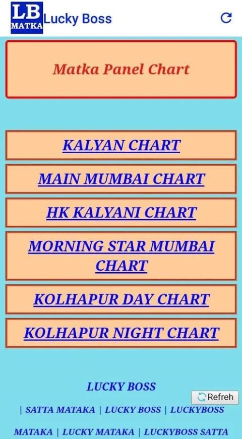 | सत्ता MATAKA | भाग्यशाली बॉस | LUCKYBOSS MATAKA | भाग्यशाली MATAKA | LUCKYBOSS सत्ता MATAKA | मुख्य मुंबई | कल्यान | एच कल्याणी | सुबह स्टार | कोल्हापुर दिन | कोल्हापुर रात |