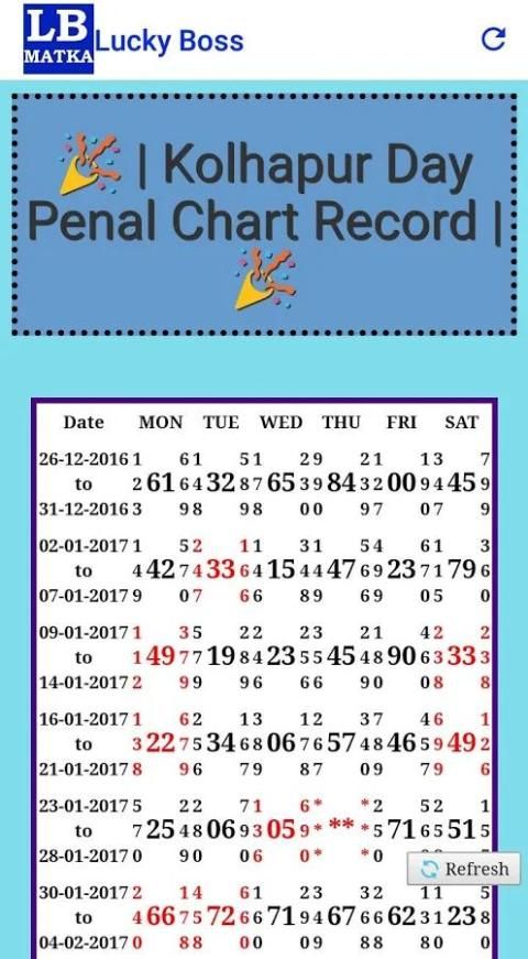 ** कल्याणी पैनल चार्ट जाओ ** सुबह स्टार के पैनल चार्ट जाओ ** मुख्य मुंबई के पैनल चार्ट जाओ ** कल्यान के पैनल चार्ट जाओ ** कोल्हापुर दिन के पैनल चार्ट जाओ ** कोल्हापुर रात के पैनल चार्ट जाओ **