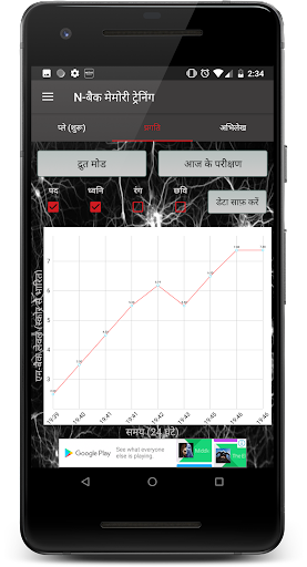 एन-बैक मेमोरी ट्रेनिंग आपको कार्यशील मेमोरी में स्टोर करने के लिए वस्तुओं के एक विविध सेट से चुनने की अनुमति देता है: