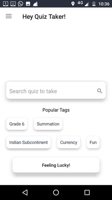 इस एप्लिकेशन को मुख्य रूप से दो विकल्प मिल गया है: 1. एक प्रश्नोत्तरी लेने वाला बनें एक प्रश्नोत्तरी निर्माता 2. रहें। दोनों पक्षों ने जो नीचे सूचीबद्ध हैं आप के लिए अनेक विकल्प हैं