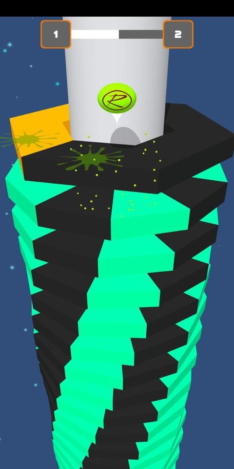 RStack Shatter is an exciting game in which you touch and hold the screen to make RBall fall down on a colored stack, try not to hit the black stacks or you will die, try to break as many stacks as you can to enable immortal mode and complete the level.