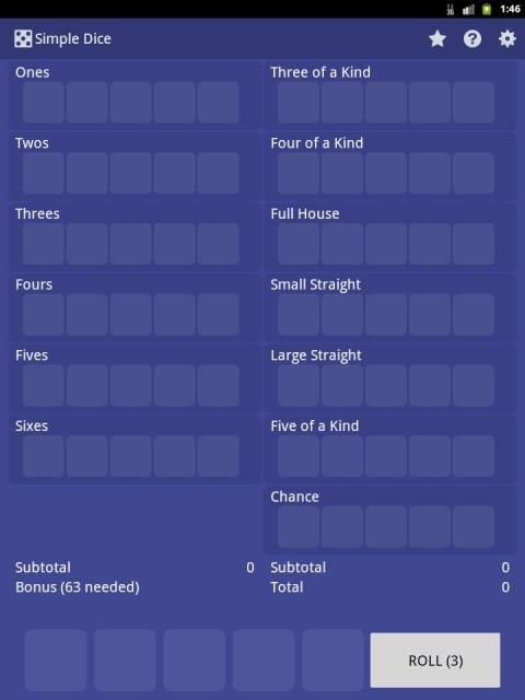 सरल अंतरफलक यह आसान देखने के लिए कितने अंक प्रत्येक स्कोर श्रेणी हर एक के लिए अगले संभावित अंक प्रदर्शित करके अपने रोल की पेशकश करेगा बनाता है, लेकिन यह आप के लिए निर्णय नहीं होगा। क्या आप प्रत्येक रोल के साथ करने के लिए चुन लिए आप पर निर्भर है। वहाँ तेरह स्कोर अपने रोल के ऊपर स्क्रीन पर प्रदर्शित श्रेणियां हैं। आप तीन मौके रोल और है कि वांछित स्कोर के लिए रोल को बचाने के लिए इससे पहले कि आप एक अंक श्रेणी का चयन करना होगा मिलता है। प्रत्येक श्रेणी में केवल एक बार इस्तेमाल किया जा सकता है।