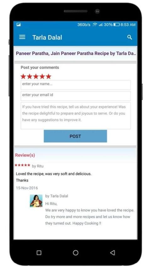 7. तरला दलाल प्रशंसकों द्वारा पोस्ट की टिप्पणियों की एक झलक है और वह भी अपनी टिप्पणियाँ साझा करें।