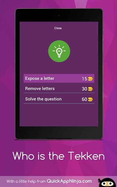 खेल में आपको विभिन्न स्तरों के विभिन्न टेककेन अक्षरों की भविष्यवाणी करने की आवश्यकता होगी।