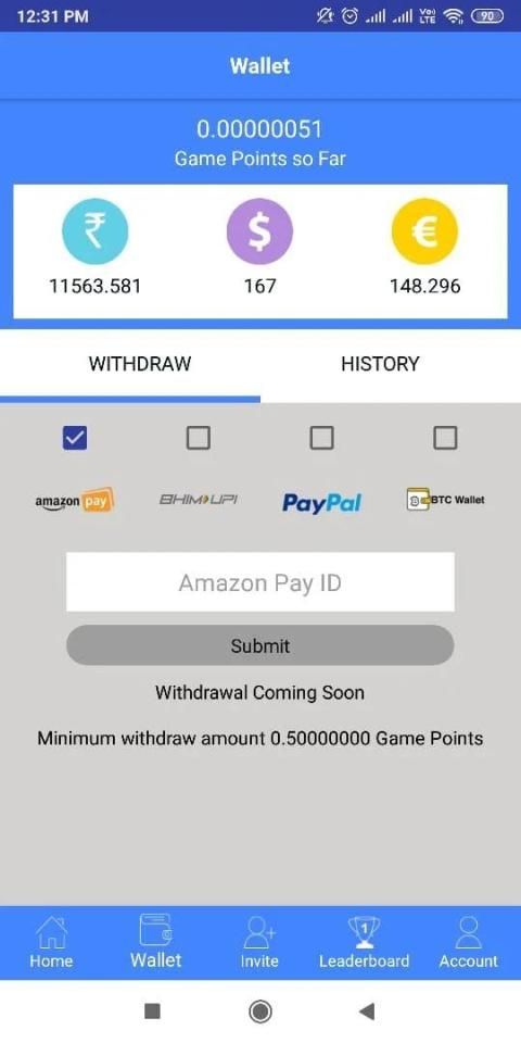 3. Withdraw points by any mode (Cash, NEFT, Paytm, Paypal, BTC Wallet - Bitbns/ Zebpay/Coinbase)