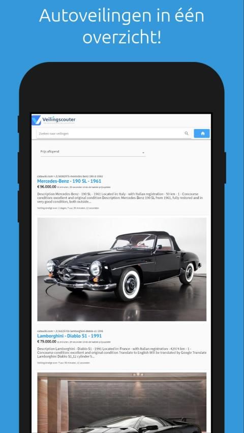 Met deze app kun je makkelijk autoveilingen van BVA, Troostwijk, Catawiki, Vavato en Moeyerson bekijken.