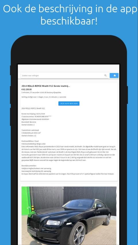 In de overzichtspagina kun je autoveilingen zien, gesorteerd op prijs of afloopdatum. Met behulp van de zoekfunctie kun in de lijst beschikbare veilingen zoeken. Per veiling is er ook een detailpagina met meer informatie en afbeeldingen beschikbaar.