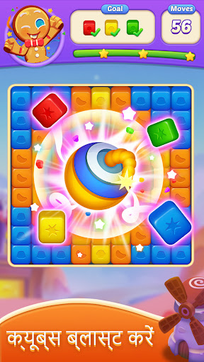 ★ रॉकेट और बम बनाने के लिए एक ही रंग के कैंडी क्यूब्स को मिलाएं जो एक पंक्ति या क्षेत्र में सभी ब्लॉकों को विस्फोट कर सकते हैं।