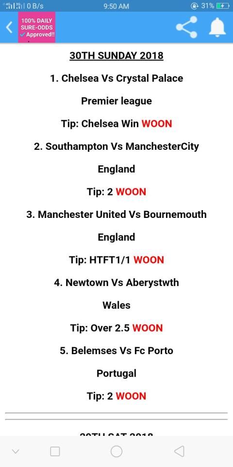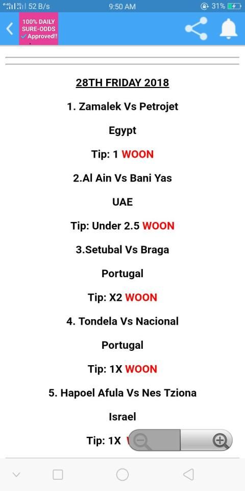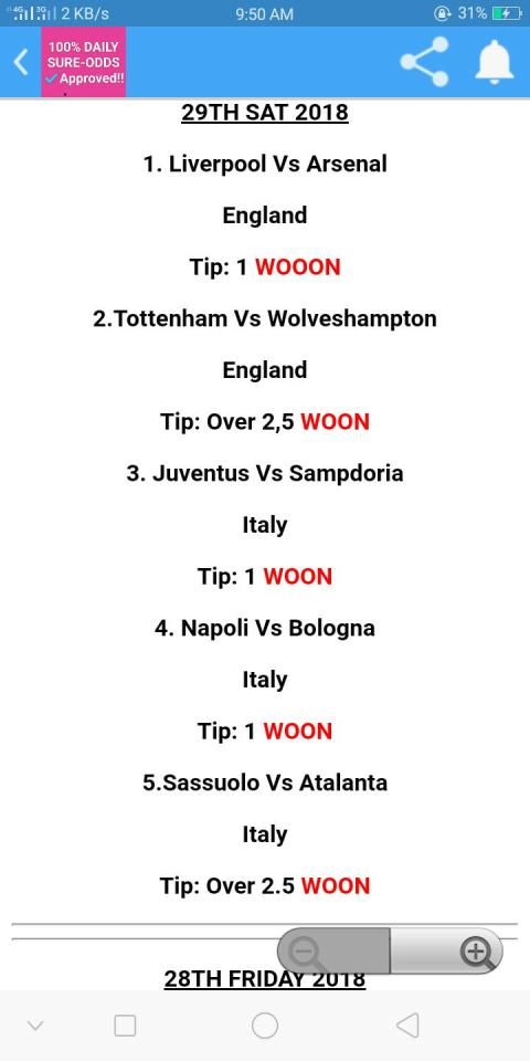 This is an app that provides users with sure daily odds that are well analyzed and approved by our experts. Do not miss out with our daily sure odds. You stand the best chance to win with us. WELCOME ALL !!!!!!!