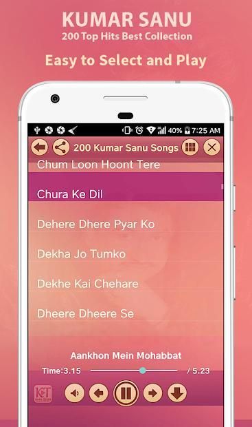 Kumar Sanu, is mostly popular playback singer in Bollywood movies.KTAppsStore brings to you great collection of Kumar Sanu top hit songs in one app.