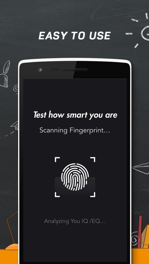 This fingerprint IQ & EQ & Lifespan Test permit you to test your Intelligence & Emotional Intelligence & Lifespan by placing your finger on the fingerprint Location.