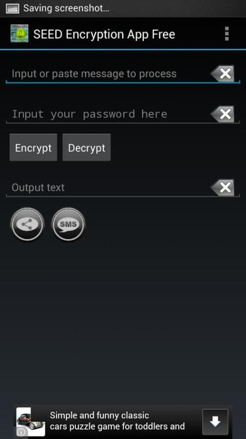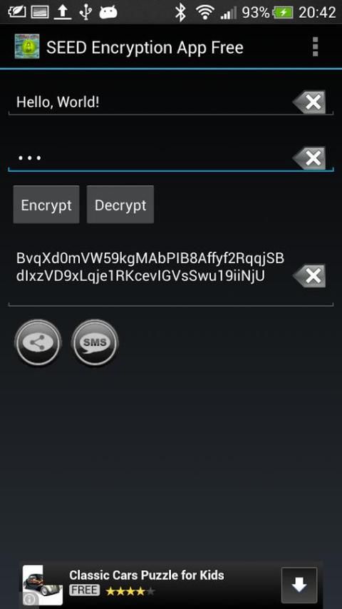 App dapat mengirim pesan terenkripsi atau didekripsi melalui e-mail, SMS, IMS, Facebook dan sebagainya, simpan dalam catatan atau membuka teks ini dalam aplikasi lain yang dapat menerima pesan teks.