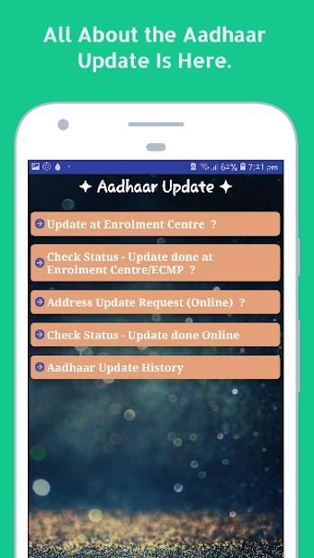 Sekarang pembaruan aadhaar terlalu mudah dan juga mengunduh itu mudah. Pengguna dapat memperbarui ada aadhaar dengan aplikasi ini.