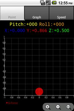 - G-Force displaying screen. A point-like chart moving from left to right, from top to bottom under the gforce.