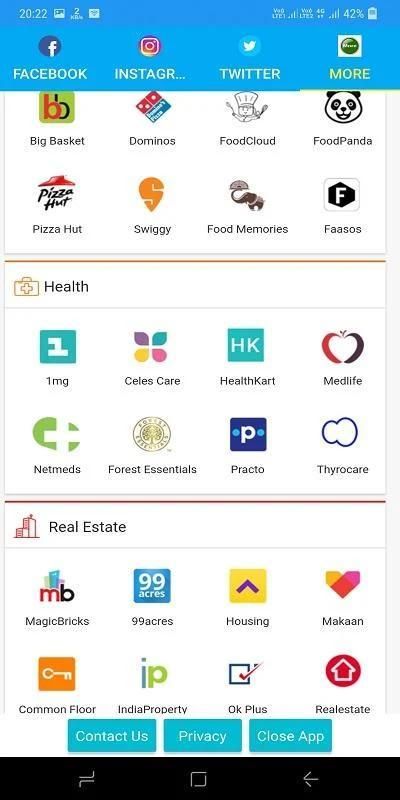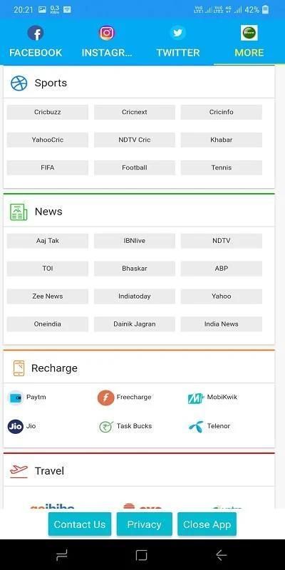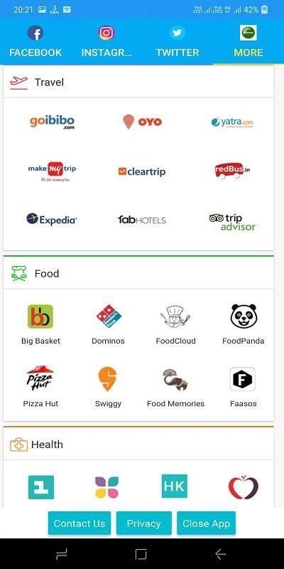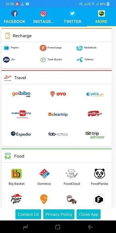 Aplikasi ini adalah kombinasi dari banyak tautan sosial pihak ketiga.