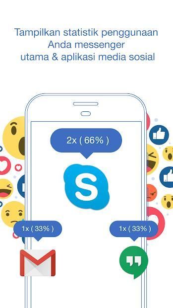 - Tampilkan statistik penggunaan aplikasi messenger & media sosial utama Anda