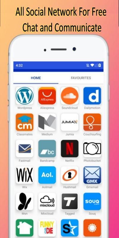 You can maintain favorite list of social media category add all social network app like Facebook, Twitter, Instagram, Snapchat , Reddit, Dailymotion, Badoo,Buzzfeed, Alibaba, StumbleUpon, Netflix, PhotoBucket, Vimeo, WixBlogger, Adsense, Admob, Quora at one social media app.