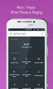 Touch gestures for eyes-free control, mute/pause on phone call, macros for chained commands, automated tasks, widgets, floating remote (chathead), backup/restore and even remote recording (HTC only due to hardware limitations)