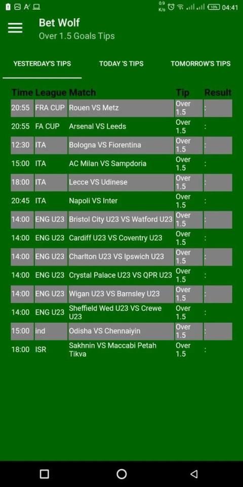 The app offers daily betting tips for free ranging from the following markets.