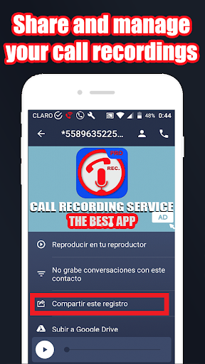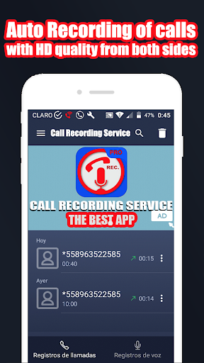 Automatic Call Recorder Service adalah aplikasi perekam panggilan sederhana dan cerdas untuk Android yang merekam panggilan dari kedua sisi dengan mudah dengan suara yang jernih. Jangan pernah khawatir tentang kurangnya rekaman panggilan penting. Rekam panggilan dan simpan rekaman dengan mudah dengan perekam panggilan ini.