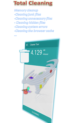 Cleaner Toor dipindai pada perangkat Anda dan memungkinkan Anda untuk membersihkan file yang tidak perlu, membersihkan file yang tidak diinginkan, cache yang jelas, membersihkan kesalahan sistem, file sampah, optimisme dan meningkatkan perangkat Anda.