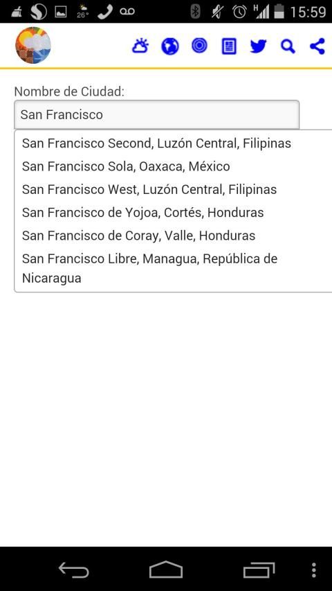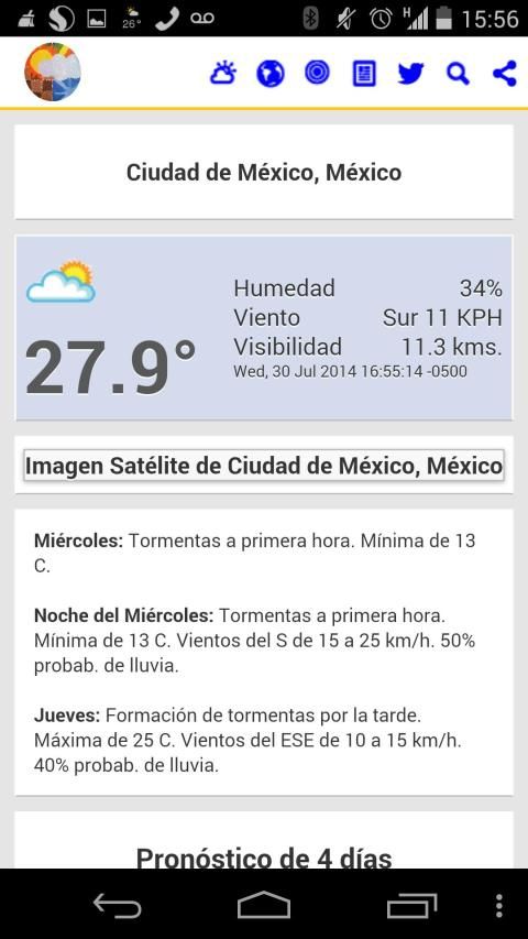 +Puedes buscar las condiciones actuales, el pronóstico y la imagen satelital de cualquier ciudad del mundo.