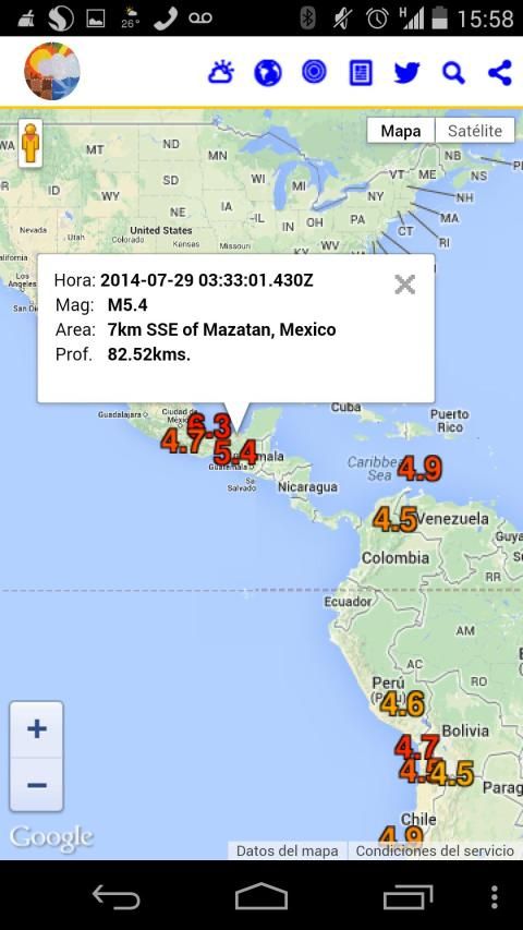 ClimaYa: terbaik prakiraan cuaca dan gempa bumi baru-baru ini secara real time, komunitas pertama di Amerika Latin untuk memantau fenomena alam.