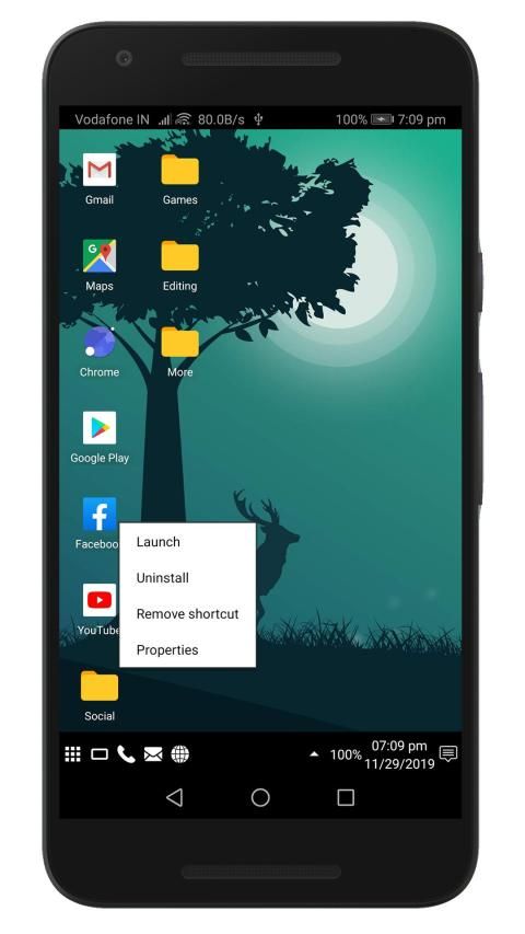 Computer FeelUI Launcher replaces your Home screen with a windows styled desktop which you can control and customise easily.