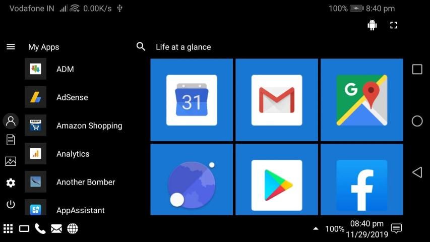 Computer FeelUI Launcher – A Windows style launcher for Android with powerful Start Menu, Action Centre to replace your home screen.