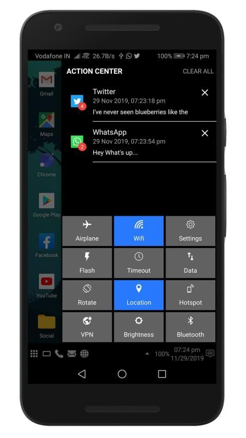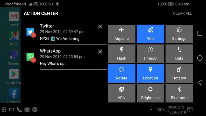 ★ Toggle device rotation from action Centre tiles directly without going to device Settings.