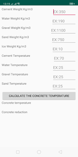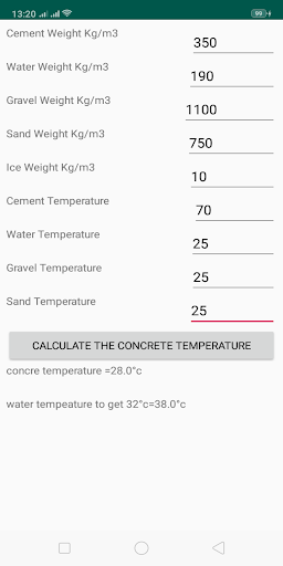 Calculate temperature of concrete according to weights and temperature of the mix components