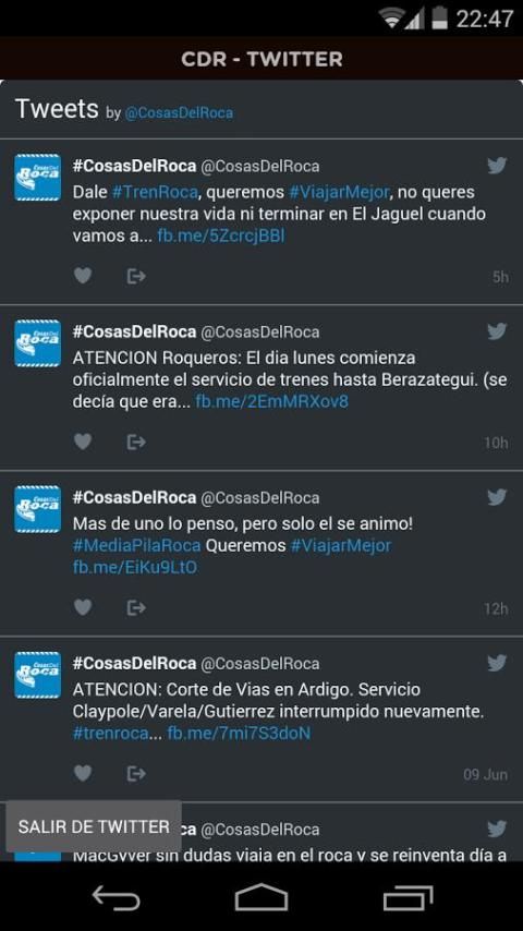 Dengan penerapan "Cosas del Batu" Anda akan dapat memvisualisasikan berapa lama kereta up're baik menunggu di stasiun. Anda juga akan dapat mengunjungi jejaring sosial tanpa meninggalkan aplikasi.