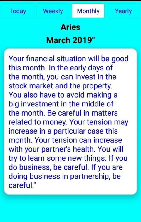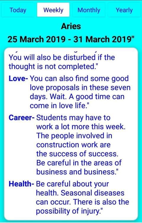 • Weekly horoscope, Monthly horoscope and Yearly Horoscope for all zodiac signs