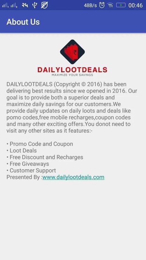 DAILYLOOTDEALS (Copyright 2016) telah memberikan hasil terbaik karena kami dibuka pada 2016. Tujuan kami adalah untuk menyediakan baik penawaran superior dan memaksimalkan tabungan harian untuk pelanggan kami.Kami menyediakan update harian di loots harian dan penawaran seperti kode pomo, mengisi kembali mobile gratis, kode kupon dan banyak offers.You menarik lainnya donot perlu mengunjungi situs-situs lain seperti fitur: -